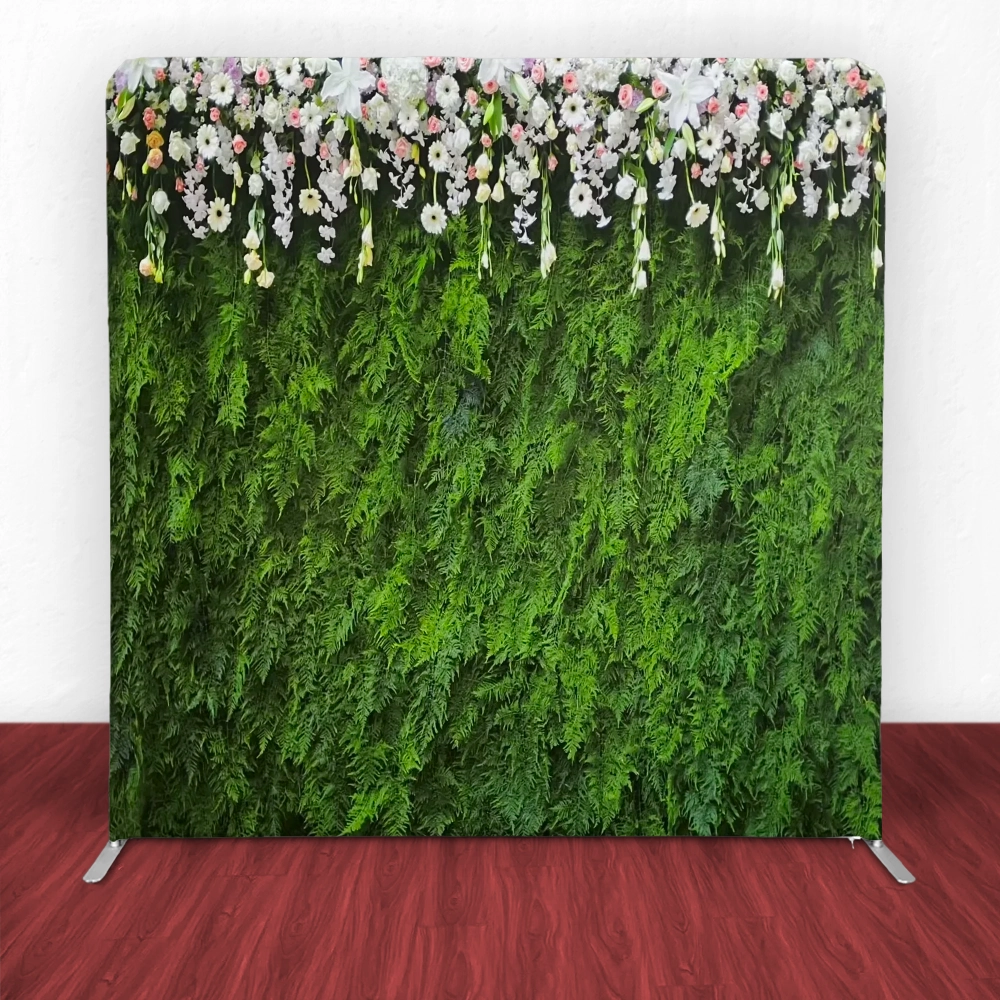 Mejore el ambiente de su evento con el telón de fondo Floral Greenery Tension , que presenta un exuberante seto verde adornado con arreglos florales en cascada. La combinación de flores blancas, rosas y pastel crea una atmósfera romántica y elegante, perfecta para bodas, fiestas en el jardín y fotomatones. Deje que este diseño encantador cree el escenario para momentos inolvidables.
