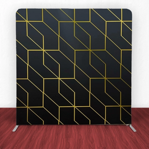 Create a striking visual impact with the Modern Geometric Straight Backdrop. Featuring sleek gold geometric patterns against a bold black background, this design exudes elegance and sophistication. Ideal for upscale events, photo booths, or contemporary decor, it’s a perfect choice to make your occasion unforgettable.